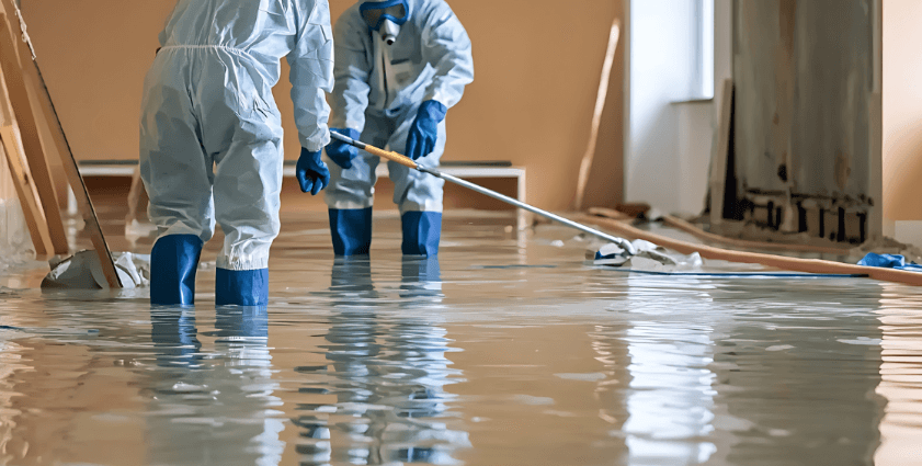 - Use protective gear: gloves, boots, eye protection, and masks if mold is present.